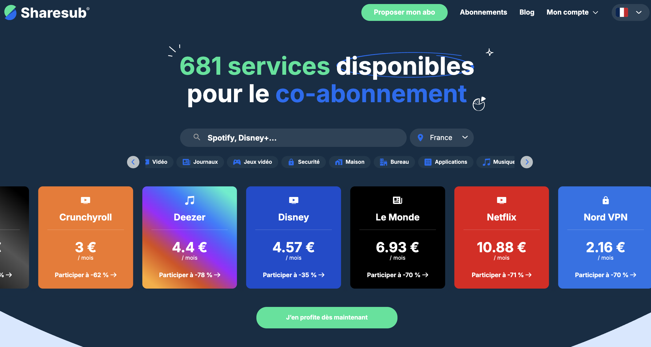 Spliiit è il punto di riferimento e il leader della condivisione degli abbonamenti in Francia 🇫🇷 È una piattaforma francese che mette in contatto gli utenti che vogliono condividere o unirsi a un abbonamento multiutente per dividere facilmente i costi.